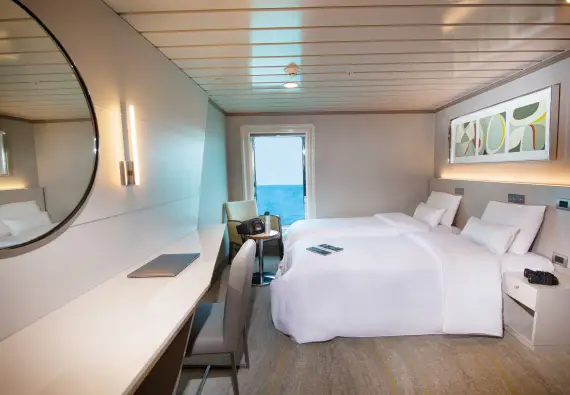 Each cabin boasts a large window that offers sweeping, panoramic views of the archipelago, allowing your clients to feel continuously connected with the archipelago as they enjoy their roomy quarters and recharge for the next day’s activities.
